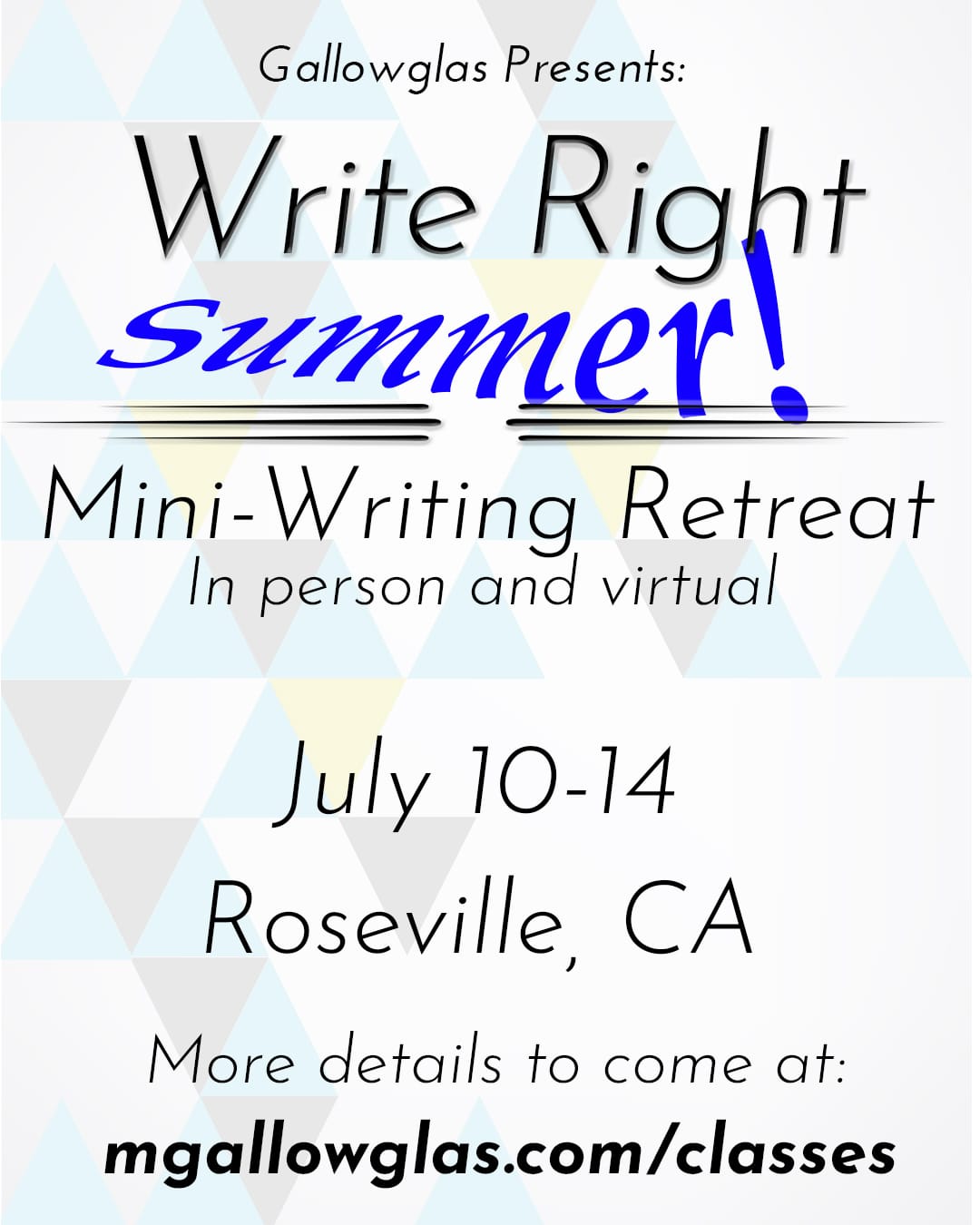 I'm going to be hosting a mini-writing retreat. We'll have in-person and virtual options. More details to come in the next few weeks. Four days of awesomeness! This is a must-attend for anyone looking to level up their writing.